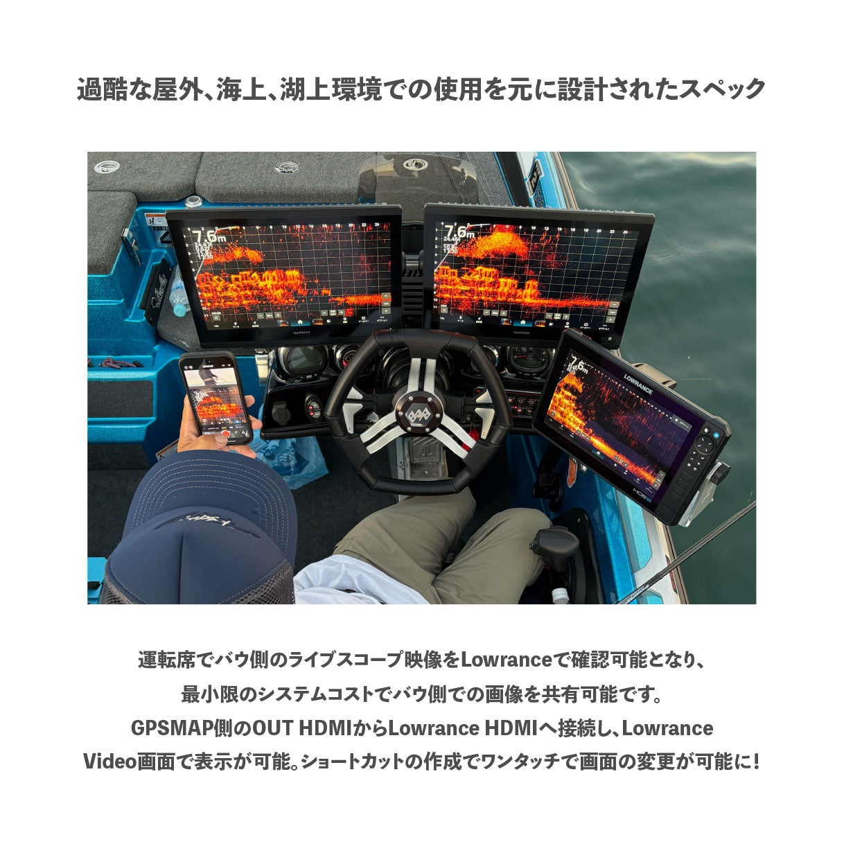 Garminの映像をLowranceユニットで映し出す防水HDMIケーブルが登場です!